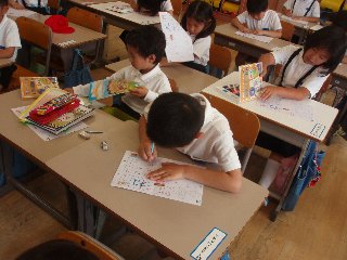 学校探検では、紙と鉛筆を持って・・・書くことができるようになってきています。