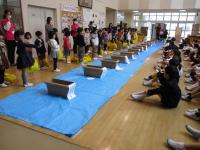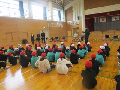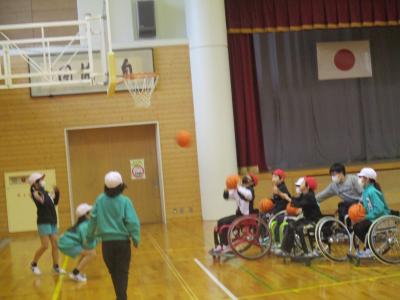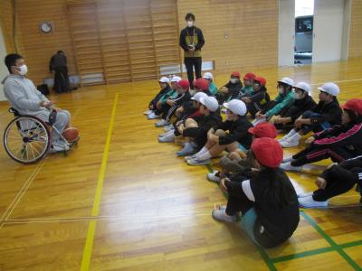 4年生は今まで総合の時間に「ともに生きる」をテーマに福祉について学んできました。今回は、車イスバスケットボールと福祉車両の体験を行いました。車イスバスケでは、Jamaney石川の2名の選手に競技の説明や模範プレーを行って頂きました。華麗なボールさばきや車イスの操作に思わず「オ~」と歓声が起きました。その後、自分たちで実際に競技をしたり選手の方に質問をしたりする中で、障害者スポーツに対する関心を深めることができました。