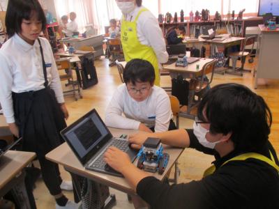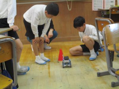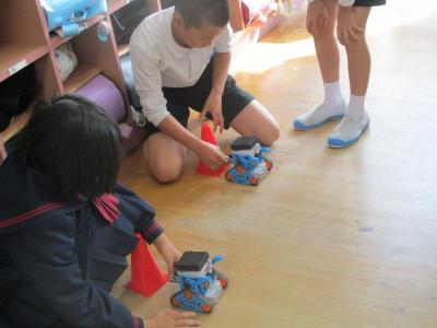 6年生はセンサーを使ってぶつからないロボットづくりをしました。何センチ前に止めるか、何度も数値を測定しながら設定することができました。