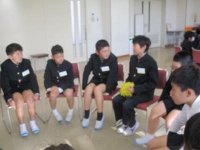 後半はビデオで活動を振り返った後、「幸せのミサンガ」の収益金をかほく市に寄付しました。代表の児童が「7月の豪雨災害に対する復興支援に役立てて下さい」と油野市長に手渡しました。高松地区を盛り上げたい、役に立ちたいという思いを実現させた子どもたちの顔は達成感に満ち輝いていました。