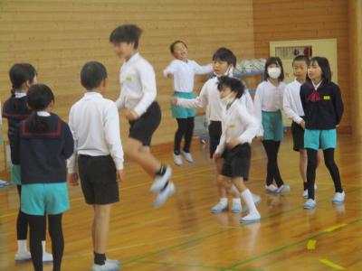 体育委員会企画の8の字跳び大会が行われています。昨日は低学年が、今日は中学年が体育館に集まり、3分間で何回跳べるかを競いました。クラスの全員がリズムに合わせて声を出し合い、励まし合って、時間の限り跳びました。今までの最高記録を出したクラスもあり、跳び上がって喜んでいました。全員で力を合わせて達成できた経験は、きっとこれからの学校生活にも生かされていくことでしょう。