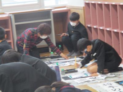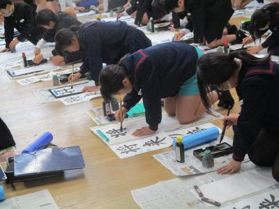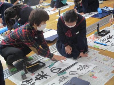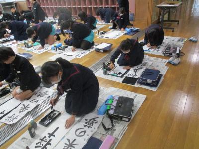 子どもたちは1月の書き初め大会に向けて書き初め練習を行っています。4年~6年生は習字教室の竹中絹子先生に書き初めの書き方のポイントを教えて頂いてます。最初に模範の書き方を見せて頂いたときは、その作品の美しさに思わず拍手が起こりました。その後それぞれの練習の時に個別の指導をして頂きました。今日、教わったことを思い出しながら冬休み中に練習を重ね、本番を向かえて欲しいものです。