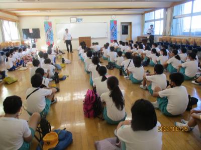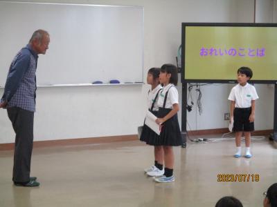 明日から始まる夏休みの生活や宿題について、担任の先生からお話がありました。子どもたちは真剣な表情で聴いていましたが、その意識が38日間続くように、宿題は計画的に行い、規則正しい生活を送り、病気や事故に合わないことを願っています。