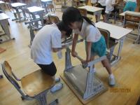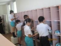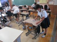 各クラスで自分たちが使った机、椅子、ロッカー、下駄箱などの掃除を行いました。どの児童も黙々と清掃活動を行い、1学期の汚れをきれいにすることができました。