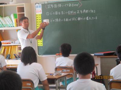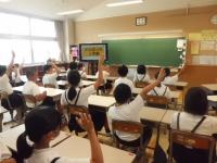 次に理科、社会、数学に分かれて授業の体験を行いました。どの授業もグループでの活動が取り入れられていて、大海小学校の子どもたちとも交流しながら、楽しく授業体験をすることができました。
