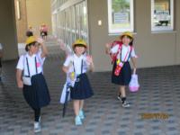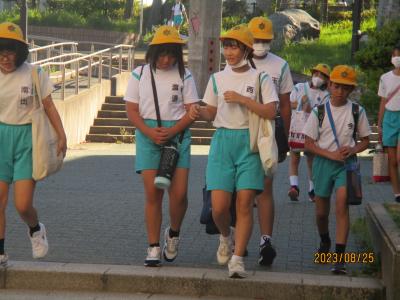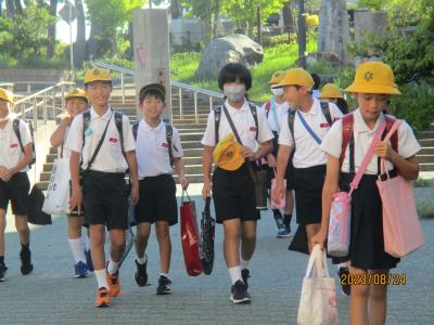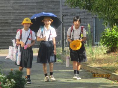 24日は4・5年生の学年登校日でした。朝から暑く、日傘を差して登校する児童もいました。