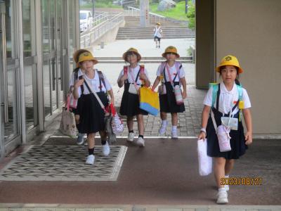 今日は1年生~3年生の学年登校日でした。夏休み帳や工作、自由研究、作文など夏休みに取り組んだ課題を抱えて、「おはようございます!」と元気に登校してきました。久しぶりに校舎内に子ども達の声が響き、私たち職員も元気な気持ちになりました。暑い日が続きますが、熱中症予防に努め、9月1日の始業式にも元気に登校してほしいと思います。
