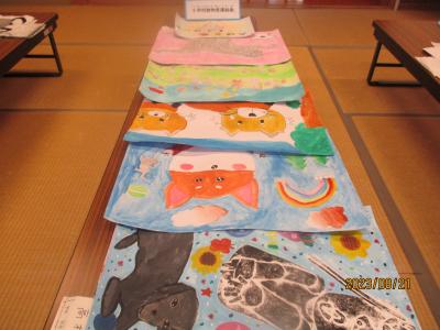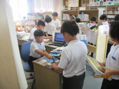 また、図書館で借りた本を返却したり、コンクールに出す作品の記名し、展示したりしました。