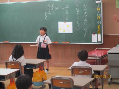 朝の会では、夏休みの仕上がった宿題を出したり、夏休みの様子を伝え合ったりしました。