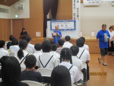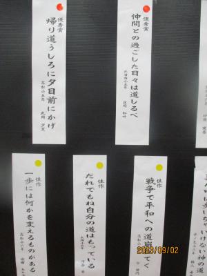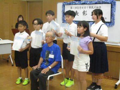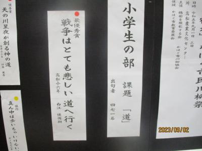 夏休み前、5、6年生が、かほく市民川柳祭に作品を応募しました。その入選者の表彰式が9月2日(土)に行われました。高松小学校から沢山の作品が選ばれました。その中でも6年生の白江さんの作品「戦争はとても悲しい道へ行く」が最優秀賞に選ばれました。入選したみなさん、おめでとう!