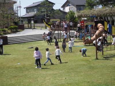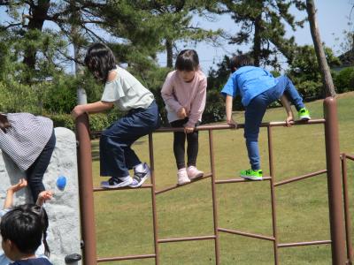 1、2年生は木津公園です。1年生と2年生が手をつなぎ仲良く歩きました。公園では遊具で遊んだり、鬼ごっこをしたりと楽しく過ごすことができました。