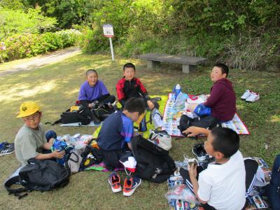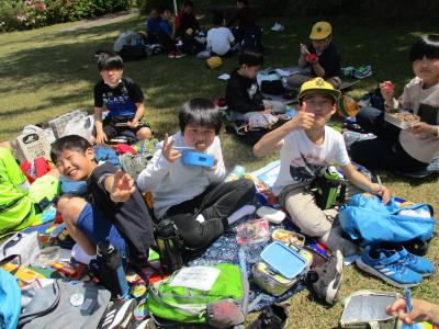5年生は宇ノ気総合公園です。片道2時間の道のりでしたが、みんなしっかり自分の足で歩きました。到着してすぐ、11時前でしたが、お弁当をもりもり食べていました。その後、遊具で遊ぶ子、池の周りや山道を散策する子など、活動的に過ごしました。