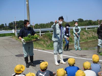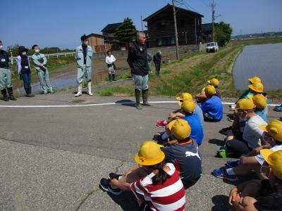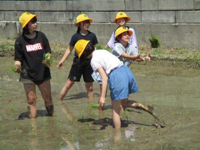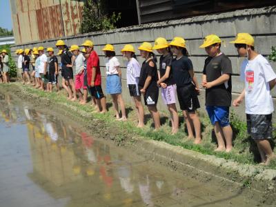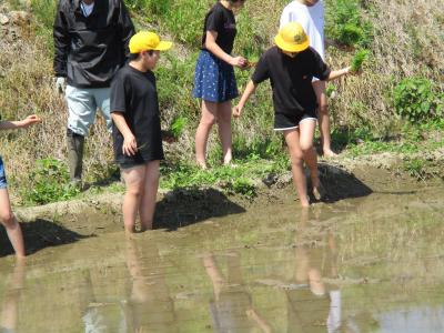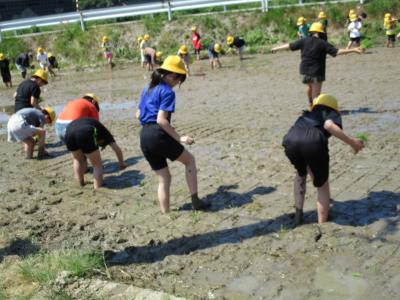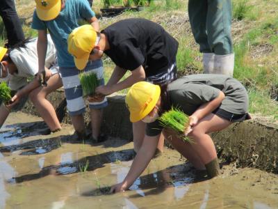 5年生が瀬戸町にある学校田で田植え体験を行いました。 JA石川かほく営農経済部や営農組合の農家のみなさんに教えていただきながら、田植え作業をしました。ほとんどの児童は田んぼに入るのが初めてと言うこともあり、中々入ることができませんでした。その内、恐る恐る田んぼに入り出し、ぎこちない動作でしたが、徐々に慣れ、植え方も上手になっていきました。この体験をこれからの総合や社会科の授業に生かしていきたいと思います。