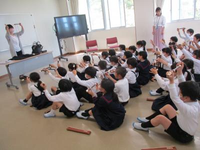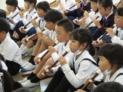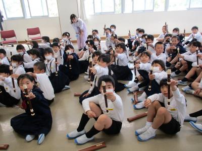 3年生を対象にリコーダー講習会を行いました。東京リコーダ-協会の井川さんに息の出し方(シャボン玉をふくらませるイメージで)、タンギングの仕方(「トゥ」を使ったリコーダー言葉で)、指の使い方(指だけで演奏)などを具体的で分かりやすく教えて頂きました。今後、習ったことを生かして練習していきたいと思います。