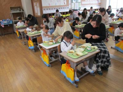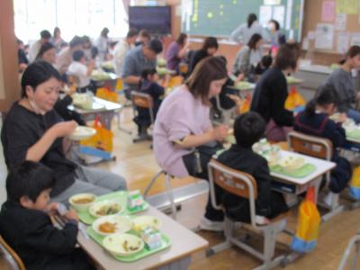 1年生のPTCAとして給食試食会を行いました。4年ぶりの開催と言うこともあり、運営に不安はありましたが、参加者のみなさんの協力で無事に実施することができました。今日は大好きなカレーを、大好きな家族と一緒に食べることができて、とってもおいしそうに食べていました。その後、別室で、栄養教諭による給食の紹介や食育について話を聞きました。子どもの健やかな成長のため、食の大切さを家庭でも学校でも伝えていきましょう。