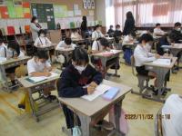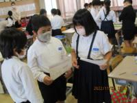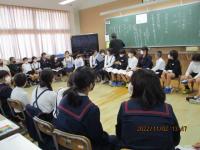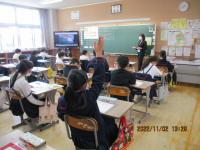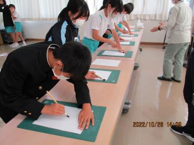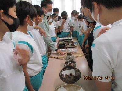 今日の午後から県埋蔵文化センターの職員の方々による出前教室が行われました。縄文時代の暮らしについてお話を聞いたり体験したりしました。勾玉作りでは、比較的柔らかい石を使って形を整えていきましたが、それでも角を丸くするのにかなりの時間がかかり、当時の苦労を実感することができました。黒曜石を使って紙を切る体験では、思いの外よく切れることに驚き、自然物を上手に暮らしに生かしていたことに気付きました。体験を通して今までの学びをより深めることができました。