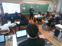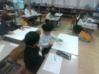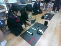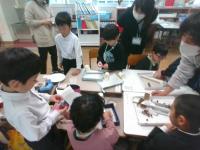 ロボットを動かしながら,コンピュータ等の仕組みやプログラムについて知る学習を行いました。今回は,知楽市のみ無さんに来ていただき,教えていただきました。自分たちでプログラムを考え,ロボットを動かし,その動きを見て,プログラムを修正し,またロボットを動かし・・・ と試行錯誤しながら,理想とする動きに近づくよう頑張っていました。