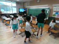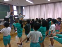 11月10日(月)5時間目に、4年生のTakaisounds音楽表現授業がありました。講師に、かほく市在住の音楽ユニットTakaisoundsの堀江小綾さん、高井城治さんをお迎えし、心と体をほぐすウォーミングアップを行う中で、子どもたちは音楽で表現する楽しさを体いっぱいに感じることができました。