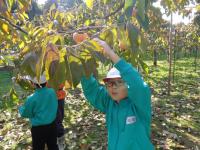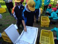 11月7日(金)に3年生が紋平柿の収穫体験に行ってきました。柿の大きさに驚きつつ,夢中になって収穫をしていました。併せて脱渋体験もさせていただきました。教室前の廊下には脱渋中の紋平柿が箱いっぱいに入っています。来週には渋が抜けて美味しい紋平柿になるかな?子どもたちは楽しみにしているようです。