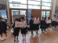 今週は学校公開ウイークです。今日は3限目に学校集会がありました。11月1日に行われた「いしかわっ子駅伝」では,男子1位,女子2位というすばらしい成績でした。今日は,その駅伝や,マラソン大会などたくさんの表彰伝達がありました。5年1組からは,今月の生活目標である「学びあいのある授業をしよう」についての発表が行われました。
