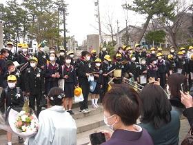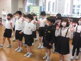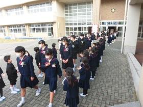 式後、前庭において、みんなで見送りました。最後まで家族、地域の皆様・学校への感謝の気持ちを伝えていました。本当にすばらしい6年生でした。卒業おめでとう!今までありがとう。中学校での活躍を心から祈っています。どうか元気で。