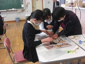 延期になっていた6年生のコサージュ作りを本日行いました。講師は、学園台「花水器」の西田さんです。材料を使って自由にアレンジし、グルーガンという接着剤を用いて整えていきます。丁寧な説明を受け、およそ1時間ほどで自分だけのコサージュができあがりました。卒業の日、胸に飾って式に臨みます。