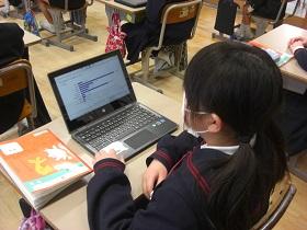 4年生の国語では「自分たちの日ごろの生活を振り返り、テーマを決めて調査し、わかったことや感じたことをまとめて、発表しています。今日の発表では、「好きな給食」「休日の過ごし方」「メディアの使い方」などでした。みんなから事前にアンケートをとり、それをグラフに表し、わかりやすく調査結果を説明していました。また、ゲームの時間がとても多いことから、その影響についても指摘し、他の使い方や過ごし方を提案したりもしていたところが4年生らしかったです。発表に対する感想では、自分の生活を見直してみようという内容が多く、発表者の思いが伝わっているようでした。みんなよくがんばっていました。