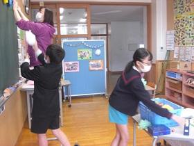 今年度も明日で終了です。それぞれのクラスでは、思い出にお楽しみ会を開いたり、よく使った机・椅子や下足箱の大掃除などをしたりしています。1年の締めくくりをして、次の学年でもがんばろうと互いに声を掛け合っている姿が見られました。