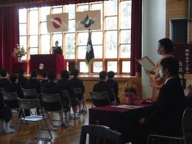 旧高松町時代から続く清水賞善行賞の表彰式が行われ、本校から6年生2名の児童が受賞しました。NPO法人清水育英会からは藤井様が出席され受賞者に賞状と副賞を手渡していただきました。受賞者には大きな励みとなり、中学校でもがんばります、とお礼の言葉を述べました。