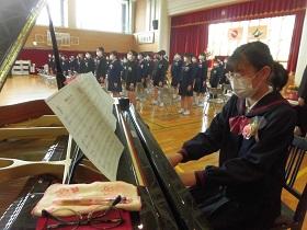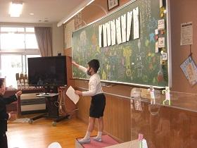 新型コロナ感染拡大防止の観点から新1年生を迎える会を中止することになりました。その代替として、こども園にビデオメッセージを送ろうと1年生が準備を進めています。今日は、劇とメッセージの練習をしていました。また、ビデオの写り具合をみんなで確かめ合っていました。1年生も随分お兄さんやお姉さんらしくなってきました。
