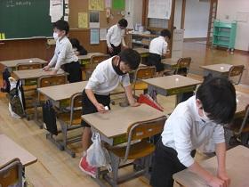 2022年3月23日 14時40分今年度も明日で終了です。それぞれのクラスでは、思い出にお楽しみ会を開いたり、よく使った机・椅子や下足箱の大掃除などをしたりしています。1年の締めくくりをして、次の学年でもがんばろうと互いに声を掛け合っている姿が見られました。