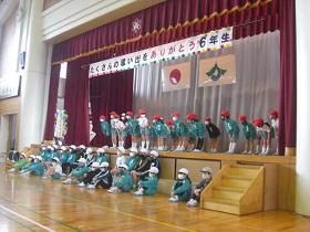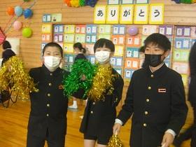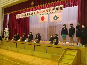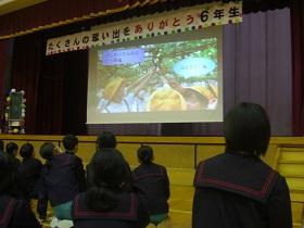6年生は、各学年の出し物を見たり、クイズに答えたり、先生の出し物で笑ったり、思いでのアルバムで懐かしんだりしました。そして「感謝・感動・倍返し」と題して、忙しい中にもかかわらず、寸劇と歌を練習して披露してくれました。運動会やなかよしグループでよくありがちな場面を設定し、コント形式でみんなを笑わせてくれました。最後に「ありがとう」を合唱し、6年生としてのメッセージを在校生に残してくれました。いい思い出になりましたね。
