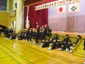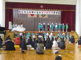 2年生は、国語教材「スイミー」を題材にした劇を見せてくれました。小さな魚が団結して大きな魚になって、マグロを追い払うという話です。一人一人が大きな声で明るく台詞を言うことができていました。歌もさわやかで、ミュージカルのようでした。本当によくがんばりましたね。