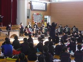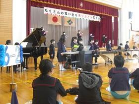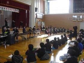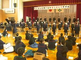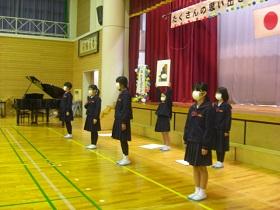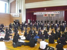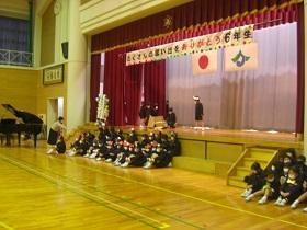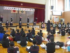 4年生は、「届け、6年生への思い」と題して合奏と合唱を披露してくれました。出し物のトップバッターとして、緊張もあったようですが、まず、合奏「栄光の架け橋」が上手にできました。次に「明日へつなぐもの」を合唱し、メッセージとして6年生に思いを伝えることができました。