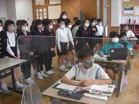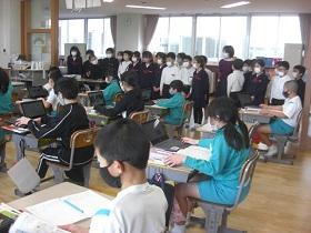2022年2月28日 14時26分3学期も終盤を迎え、明日から3月です。児童には、進級を意識してもらうために、一つ上の学年の授業を参観しています。今日は、短い時間ですが、3年生が4年生の授業を見学に行きました。どんな学習をしているのか、聞き方・話し方はどうか、など3年生は真剣な表情で見ていました。一方4年生は、3年生が来ることもあり、上級生としていい姿を見せようとがんばっていました。緊張感のあるいい雰囲気でした。