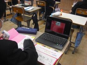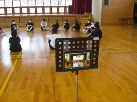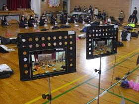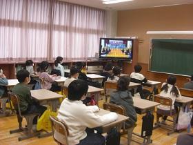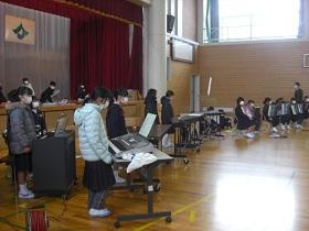 六年生を送る会を来週に控えて、各学年の準備練習も大詰めに入ってきました。4年生は体育館において合奏練習を行っていました。PTAで購入していただいたジェットヒーターを早速試運転させています。寒いこの時期には大助かりです。また、本番は一堂に会することが難しいため、タブレットで各教室に中継できるかどうか実験撮影も行っています。
