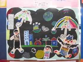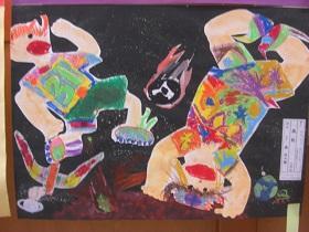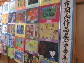 3,4年生の郡市図画作品の展示が本校で行われています。各クラスの代表作品6点が入っています。感性を生かした力作が勢揃いです。他の児童にとってもいい刺激になっています。