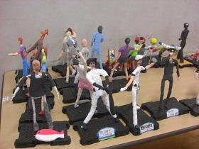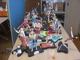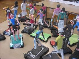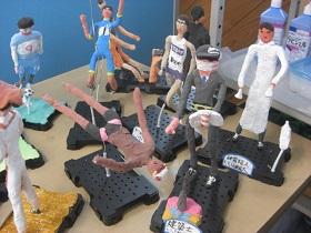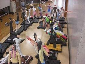 6年生の図工では、将来の自分をイメージした像を作成しています。こんな職業で働く自分、活躍する自分を表現しています。一人一人の夢が輝く作品が勢揃いしています。