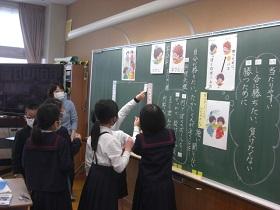 明日は、いよいよ6年生を送る会です。感染対策をしながら実施します。児童は、学年ごとに入れ替わって演技します。距離を取って行います。今日は、それぞれの学年で準備したものを掲示し、お祝いムードを高めました。5年生は、最終リハーサルを行い、明日の進行を確認しました。6年生の皆さん、明日を楽しみにしていてください。