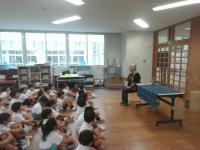 10月3日に、やまんばさんのお話会がありました。1年生では,絵本「しげちゃん」の読み聞かせと,ラトビアの昔話「よくばりワシカ」のお話をしていただきました。最後は、それぞれに願い事を心にうかべながら、10月が誕生月の児童がろうそくの火を消しました。やまんばさん、楽しい時間をありがとうございました。