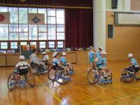 10月21日(火)に総合の福祉の学習でゲストティーチャーとして岩崎さん、伊藤さんをお招きし、車いすバスケットボール体験をしました。