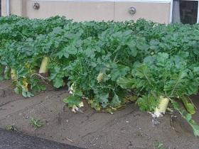 2年生が育てている大根がとても大きくなりました。葉も大きく広がっています。そろそろ収穫の時期です。楽しみですね。