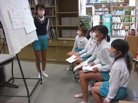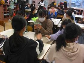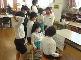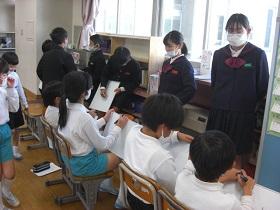 児童会の企画で今週から今月末まで、長休みや昼休みを使って異学年で構成されたなかよしグループ活動が行われています。児童が考えた様々なゲーム的活動が学校全体を会場に実施しています。異学年の児童同士でカードを持ち、会場を巡ります。密を避けるため交代で行います。各会場を運営するのもなかよしグループ高学年です。異学年交流の促進、表現力や高学年のリーダー性等の育成につながると考えています。毎日休み時間はお祭りのように賑わっています。