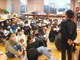 昨日の2,3限目に高松こども園、学園台こども園の年長児を招いて交流会を行いました。1年生はこれまでに、どんぐりや落ち葉など、秋らしいものを集め、ものづくりをしたり、楽しめるゲームを考えたりしながら準備を進めてきました。また、進行や年長児の案内の仕方についても練習してきました。当日は、みんな張り切って年長児を迎え、やさしく応対したり楽しんだりしていました。お兄さん、お姉さんのようでした。