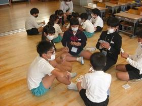 異学年縦割りグループで活動する「なかよしタイム」を実施しました。6年生が中心となってみんなで楽しめる遊びを計画しました。風船を使った遊び、しっぽ取りゲーム、トランプや言葉ゲームなどで楽しく過ごしました。高学年は、道具準備やルール説明、審判、進行などそれぞれが役割をになって自主的に行動しました。こうした活動を通して、異なる学年で友達を作り、互いを理解し、思いやりやリーダー性を育てることをめざしています。