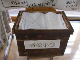 高松中学校ボランティアサークル「絆」の呼びかけに応じ、協力した古タオルの回収について、先日、この事業の実施主体であるデイサービス「暖」の職員さんからぞうきん100枚をいただきました。施設の入所者の方々が、苦労して作られたそうです。大事に使わせていただきます。ありがとうございました。