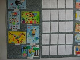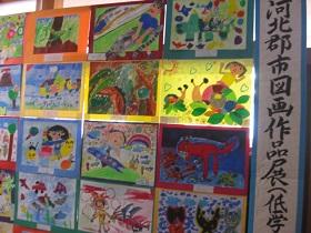 河北郡市学校教育研究会主催の図画作品の展示がありました。今回は1,2年生の作品でした。郡市内の小学校から各クラスの代表1名の作品が張り出され、本校からは5作品でした。各校の代表にふさわしい力作が並んでいました。