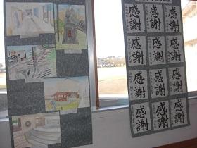 先日開催された、市の生涯学習フェスティバルにおいて、学校代表として図画と習字の作品が展示されました。展示会が終わり、作品が学校に戻ってきたので、現在体育館への渡り廊下に展示されています。11月5日(金)まで学校公開ウィークとなっておりますので、授業参観でご来校の折にご覧ください。