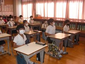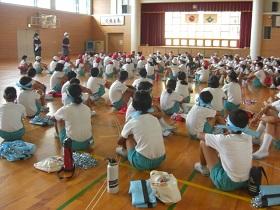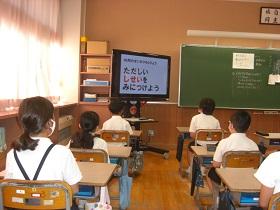 今回も、感染対策として、放送で全校集会を行いました。河北郡市の科学研究の優秀作品の表彰を行い、今月の生活目標「正しいしせいをしよう」についてつたえました。児童は、各教室で背筋を伸ばしながらテレビ画面を見ていました。学校長からは、運動会でがんばったこと、秋の交通安全週間でのあいさつのこと、暴力やからかいが許されないことなどについてあらためてお話ししました。