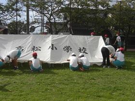 明日の運動会実施に向け、午後から会場準備を行いました。児童も張り切ってがんばっていましたが、少し進んだところで、残念ながらにわか雨に見舞われ、中断することになりました。児童の健康やグラウンドのコンディションを考慮して、残りは明日の朝に行うこととしました。